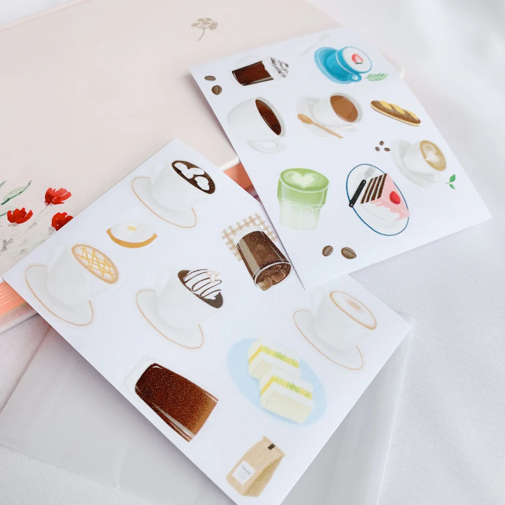 Original stickers by The Washi Tape Shop! A cup of coffee or tea, a sweet dessert, and a moment to enjoy the sunshine. A sticker collection for versatile use for all ages.